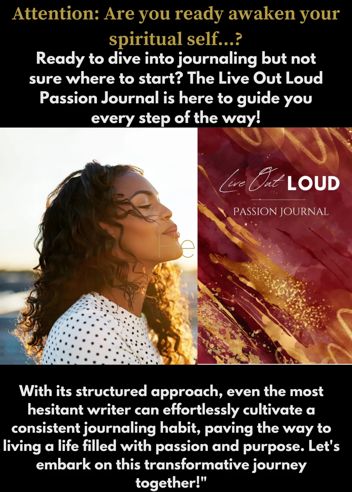 Live your journey with purpose in the Live Out Loud Passion Journal. Each stroke affirms growth, resilience, and authenticity. Your daily companion to a life filled with passion and purpose.
